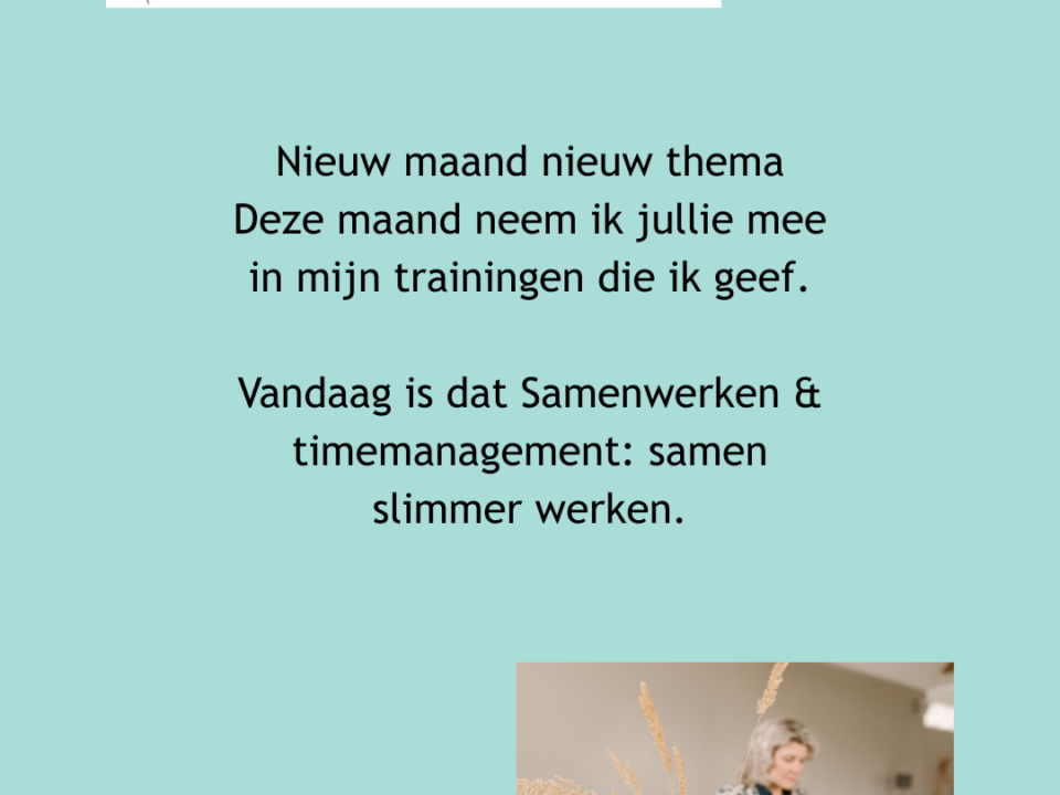 * Bv ‘Communicatie’, roep bijvoorbeeld de maand september uit tot de maand van de ‘communicatie’ en ga hierover in gesprek met je collega’s. Maak het visueel!